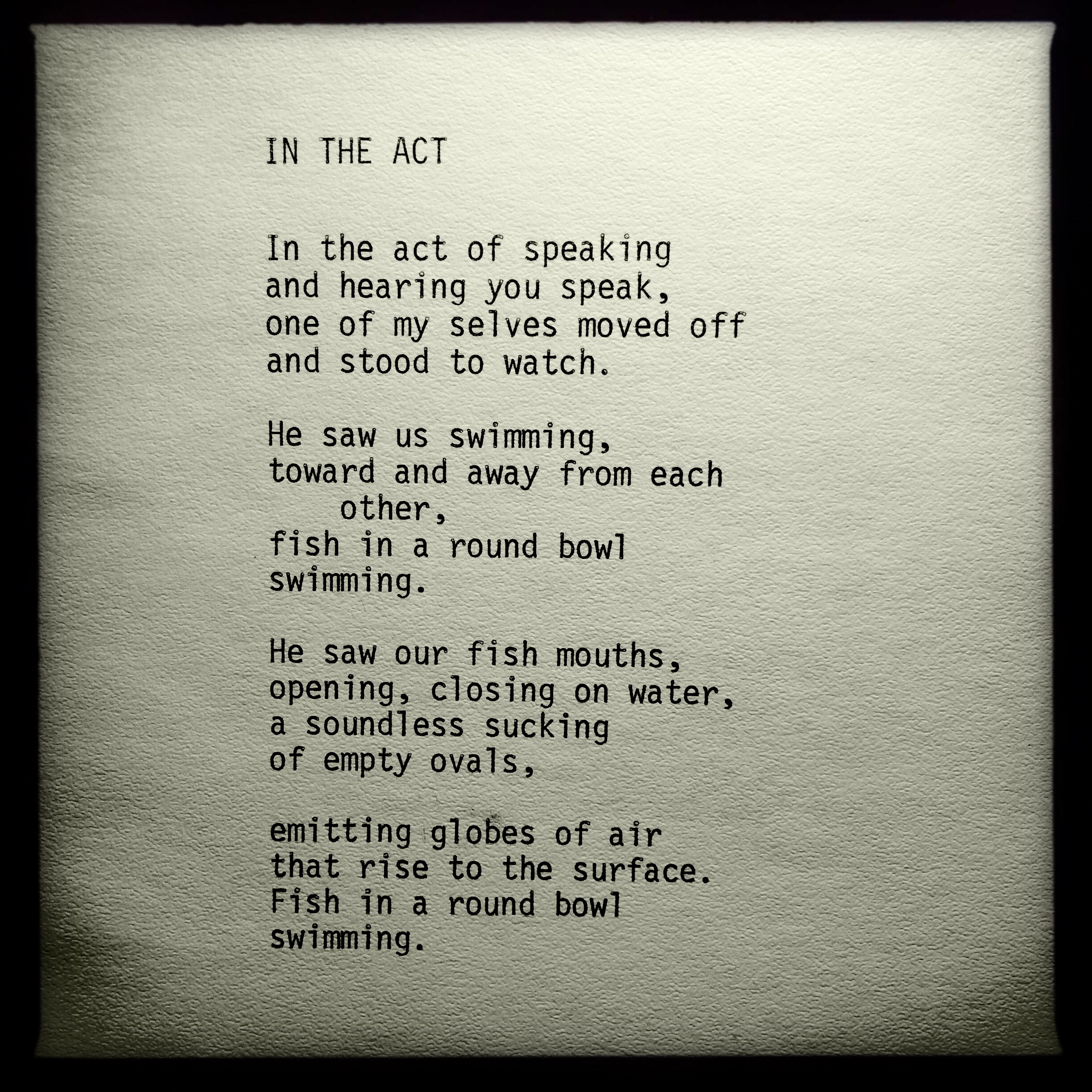 *Link to my haiku, distilled (obviously) from the first verse of IN THE ACT: In the Act of hearing you speak…